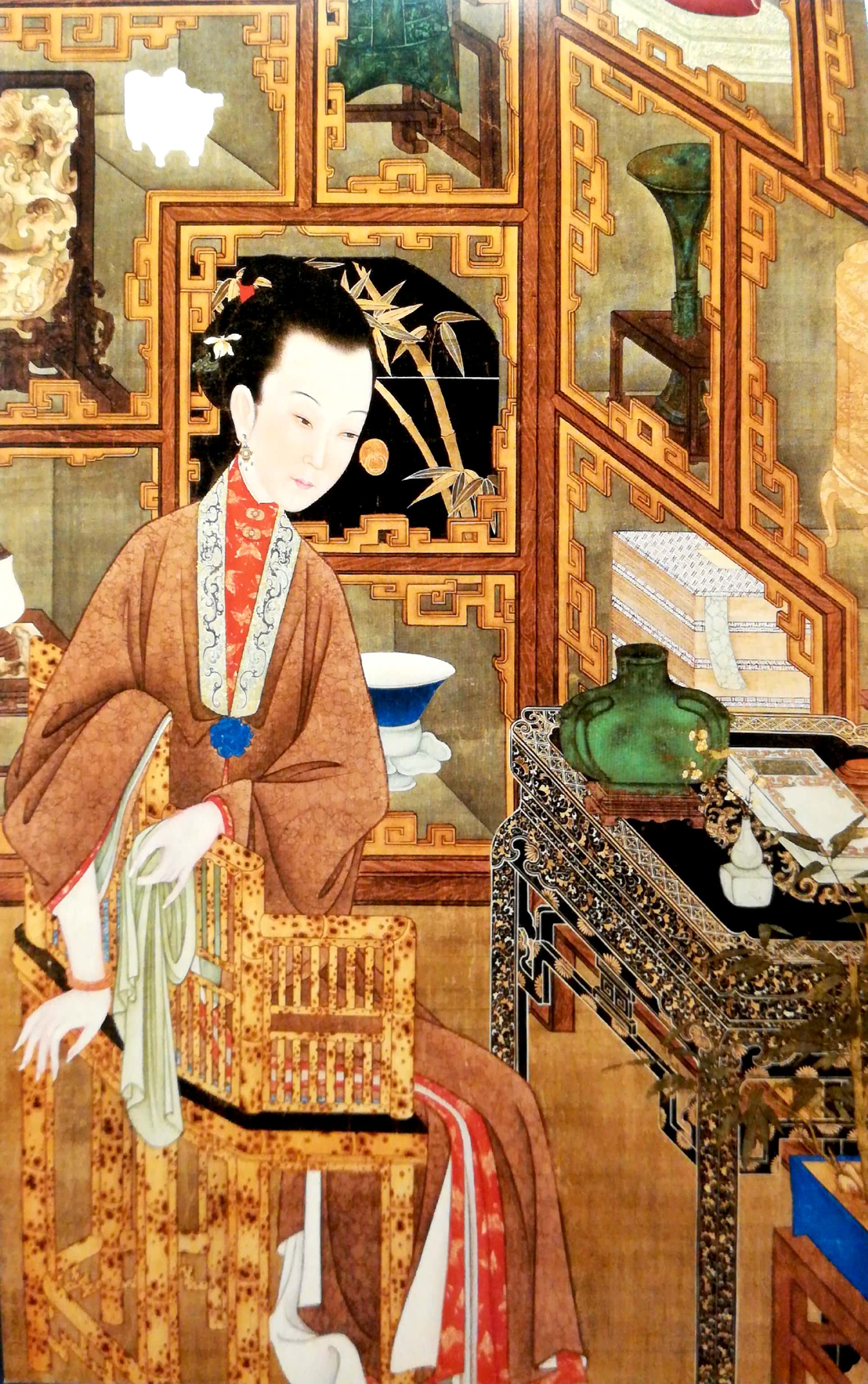 这套是 故宫珍赏 十二美人 ,选了其中的两张