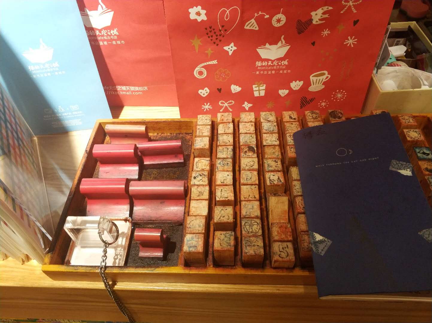 山塘街猫空是小熊集戳的第二站,这里的猫空也很别致,只是感觉比平江路的稍微小一点,山塘街猫空的戳让小熊很欣慰,是那种自带印油不用蘸印台的速干印章,一个大的店戳和几个小的卡通纪念戳。