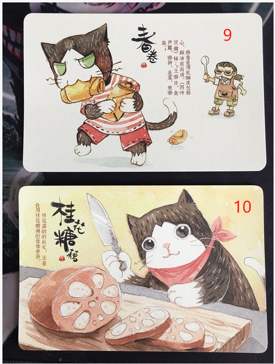 提供明信片:猫的天空之城《苏州小吃》,看照片,一共10张。