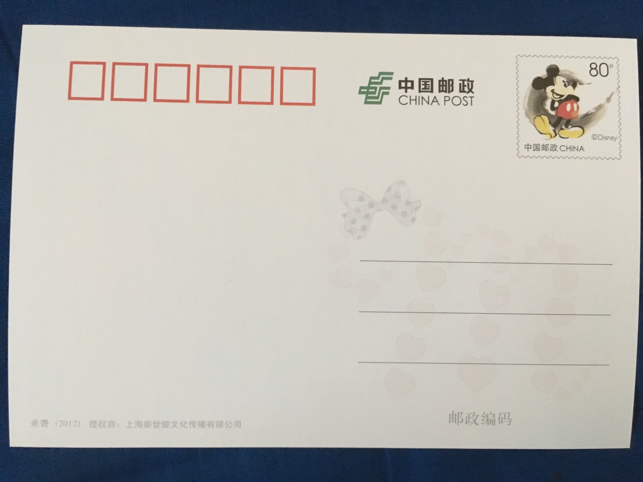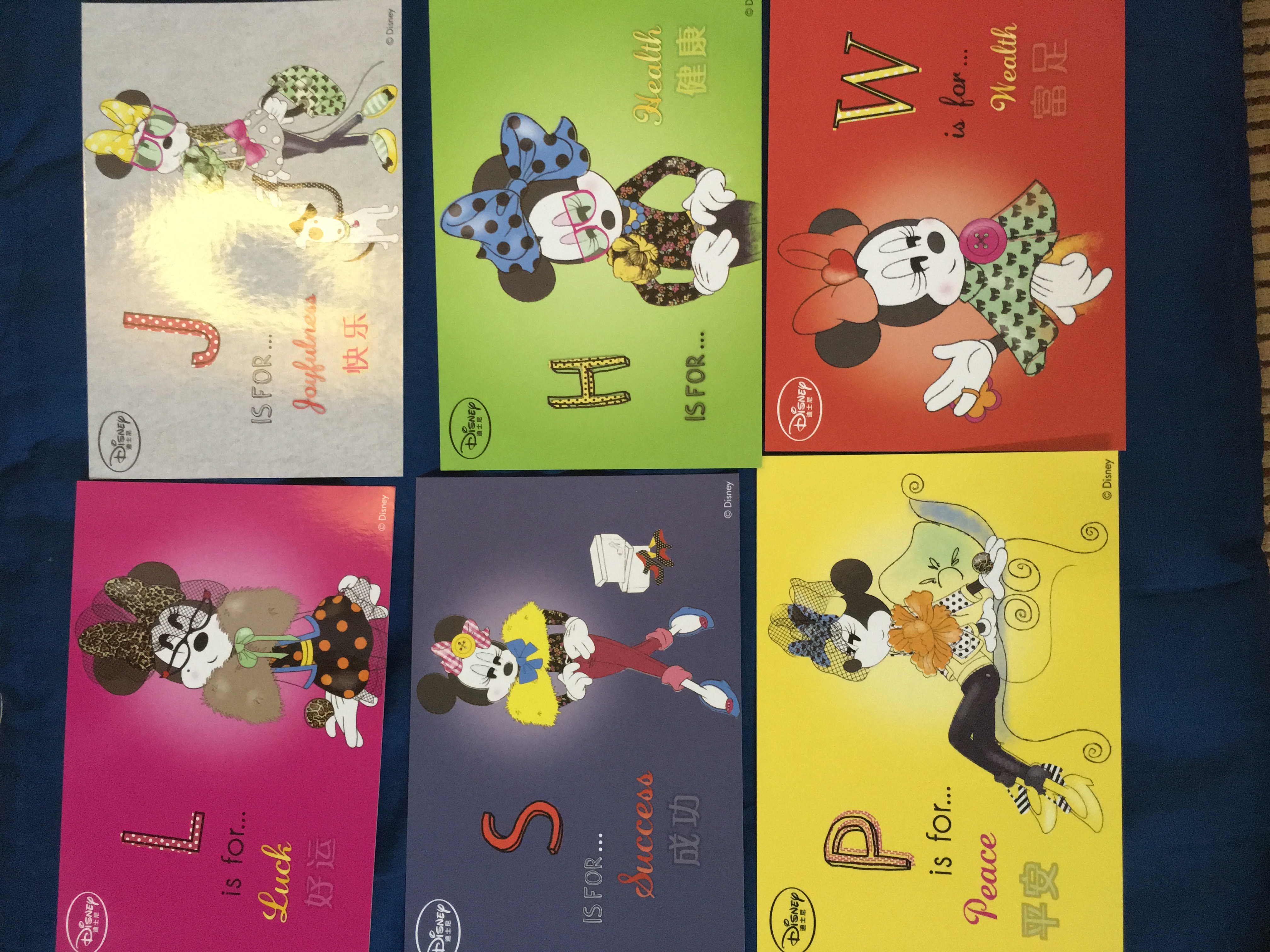 挺喜欢这套邮资片的,时尚女王米妮!背面是米奇的邮资图案和米妮标志性的波点蝴蝶结,也算特别吧,每个字母有对应的祝福,大家加入活动可以选择字母,话题随意,希望不嫌弃邮资片。