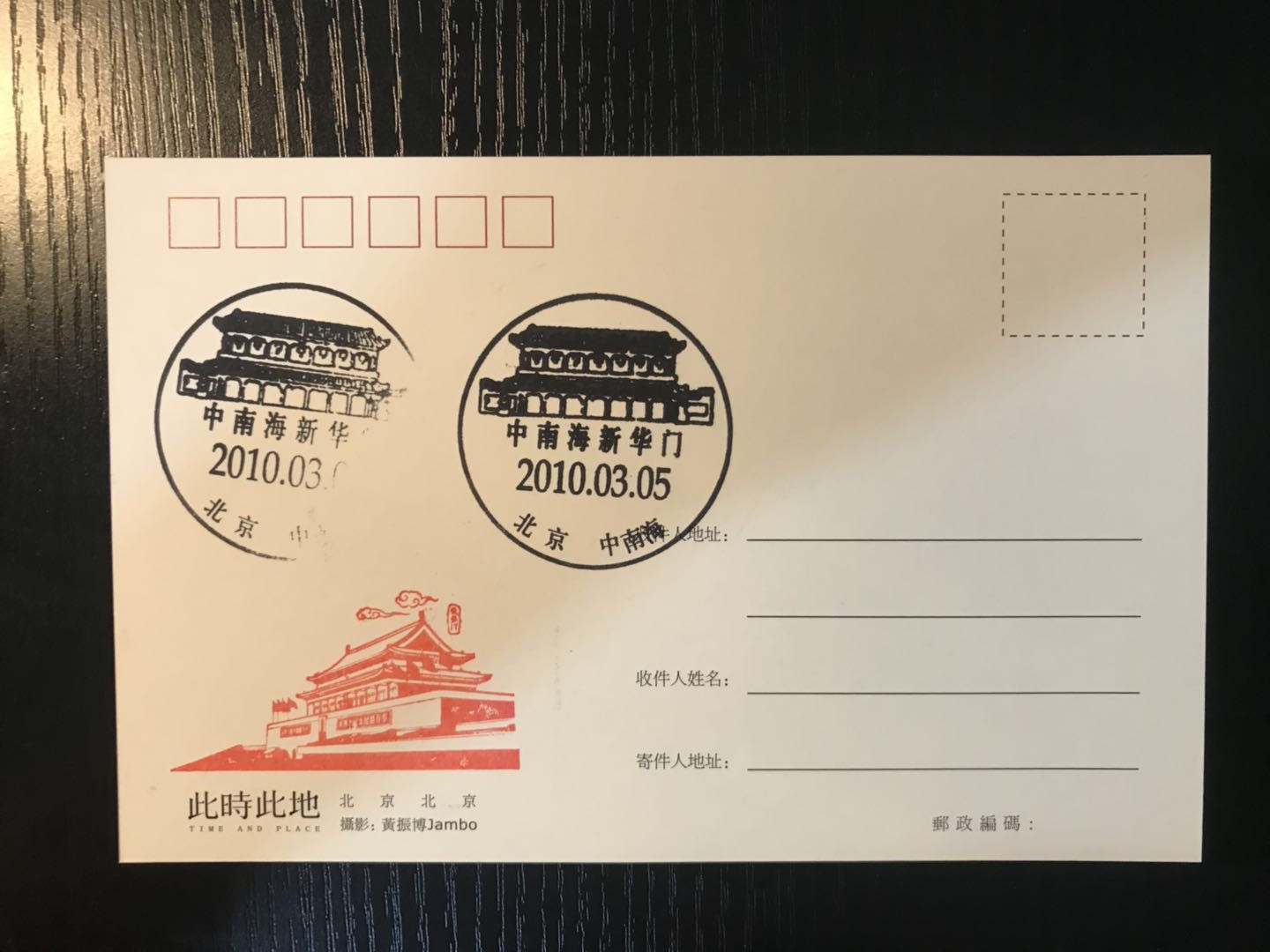 提供明信片:盖糊了戳的天安门片