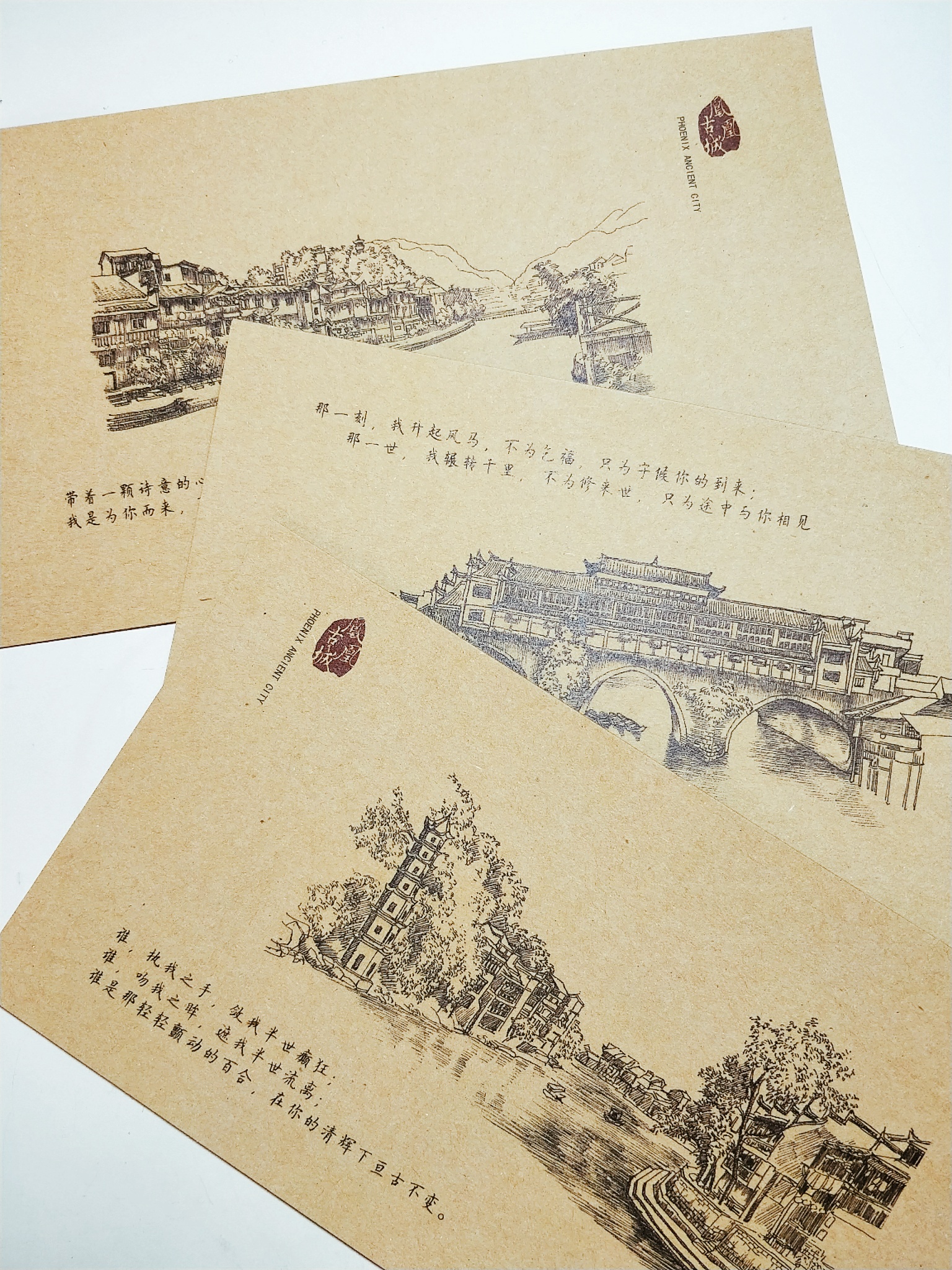 提供明信片:凤凰古城的手绘card