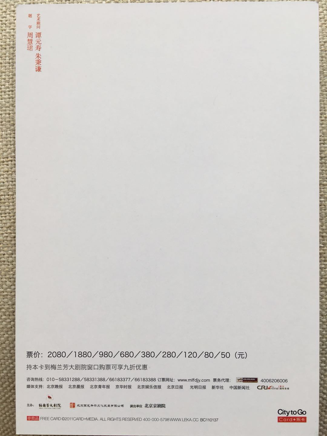 明信片正面: