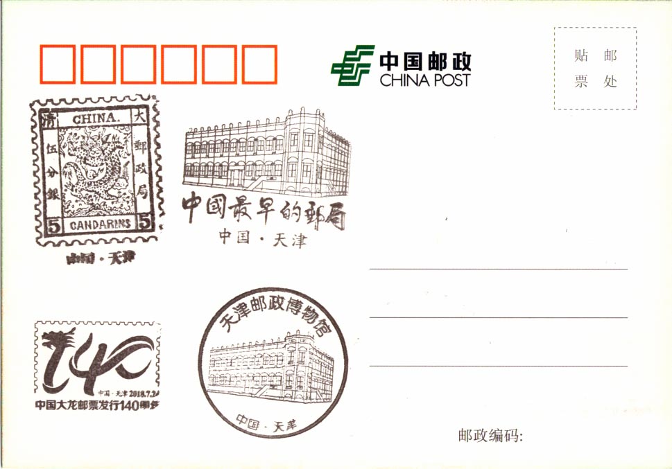 已经盖了相关的纪念戳,寄出的时候销“天津 大龙邮局(临)1”日戳。