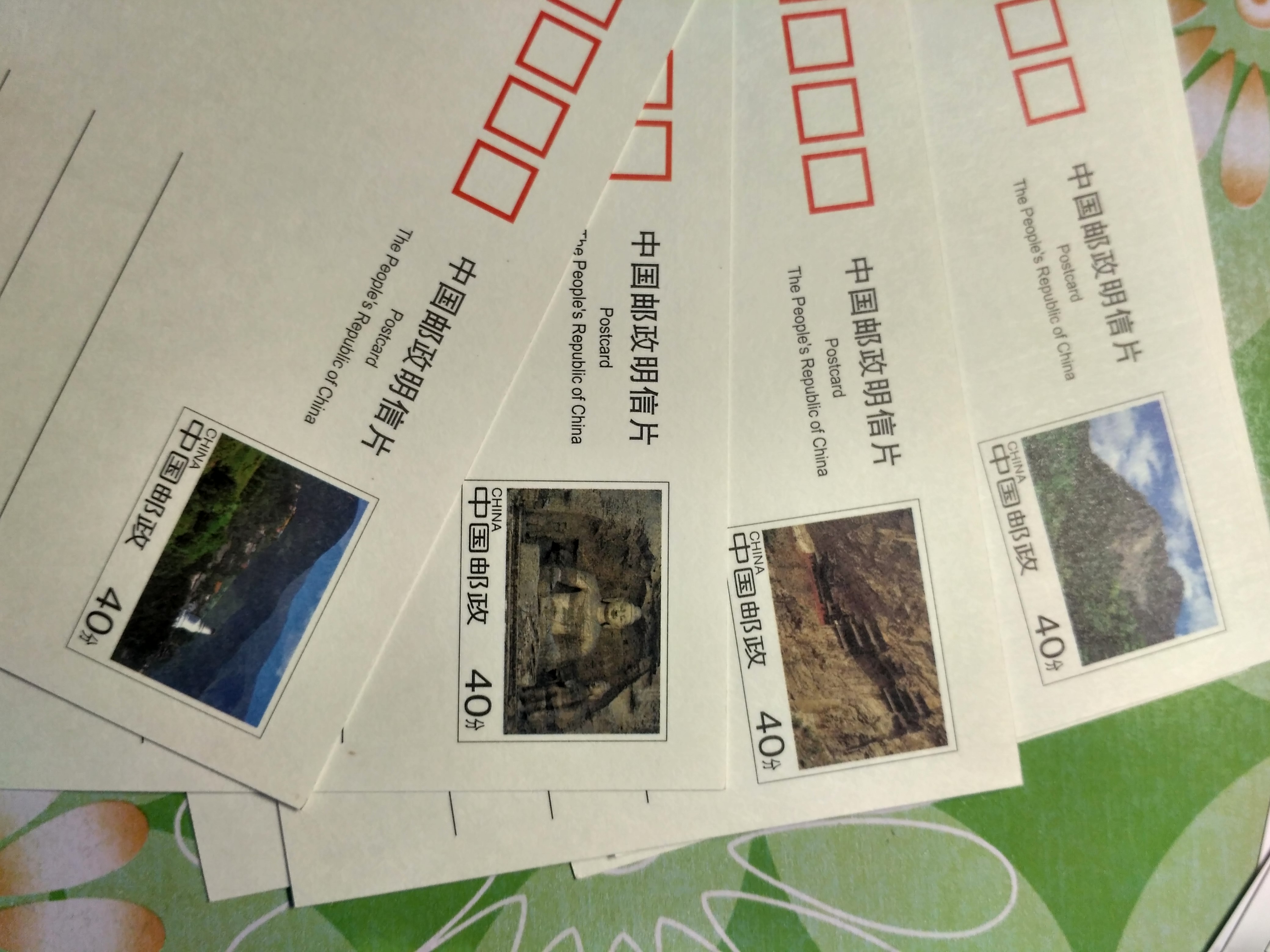 盖了纪念章的片只有三张(如下),所以剩下的会寄一些盒装或自制片。哦,还有一些40分的邮资片???40分的能寄出去吗?还是还要再贴邮票?如果可以寄,就一并随机发片了。内容看你要求,不然我就自由发挥了。