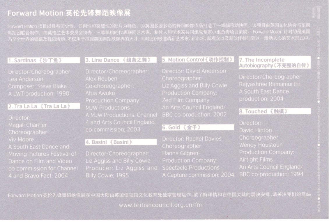 如图正反面,英伦先锋舞蹈映像展免费片,由于没有地方写字,会套寄。