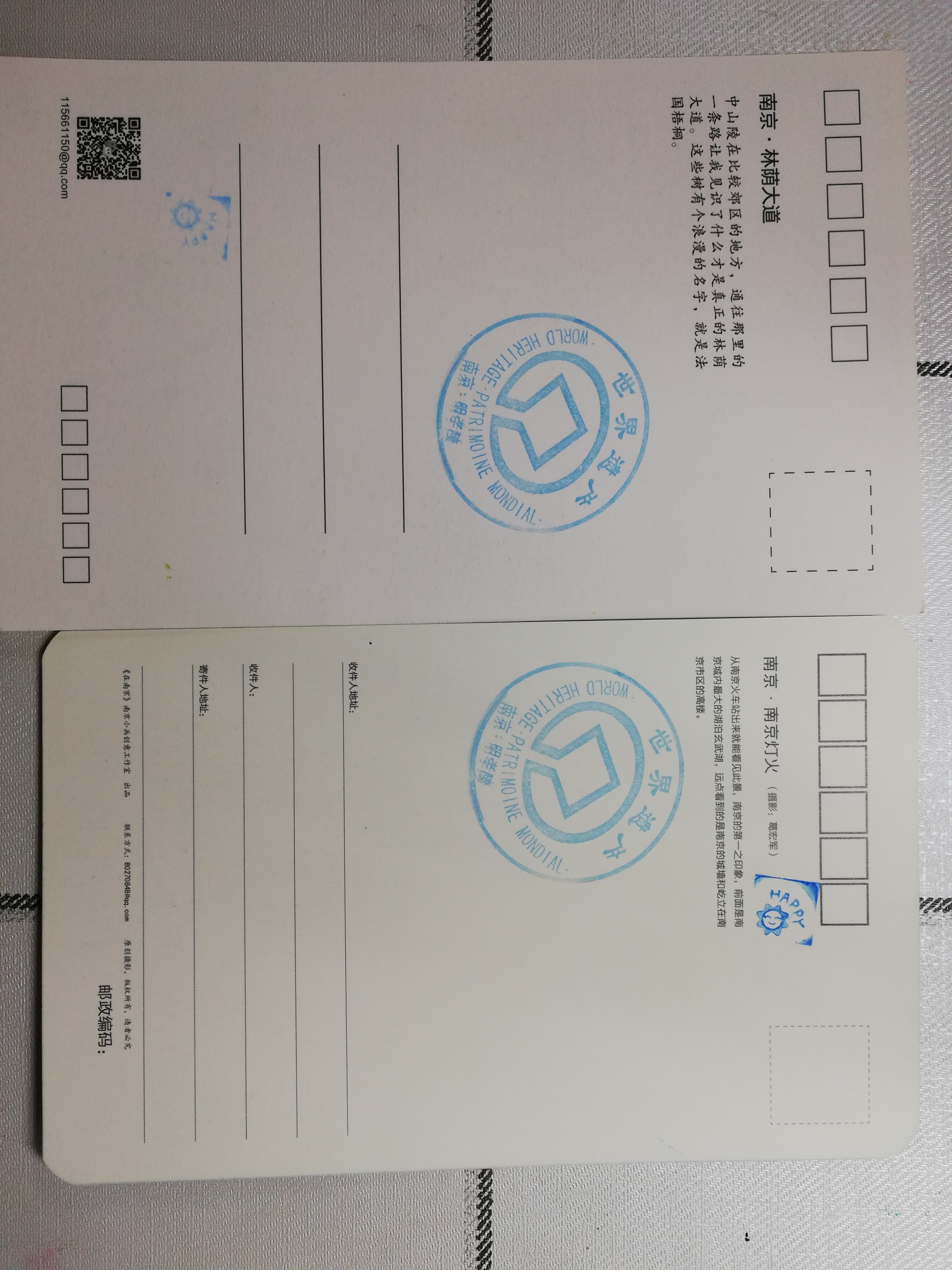 当时和朋友去明孝陵玩买了两套明信片 都寄掉了还剩两张 盖了纪念戳~