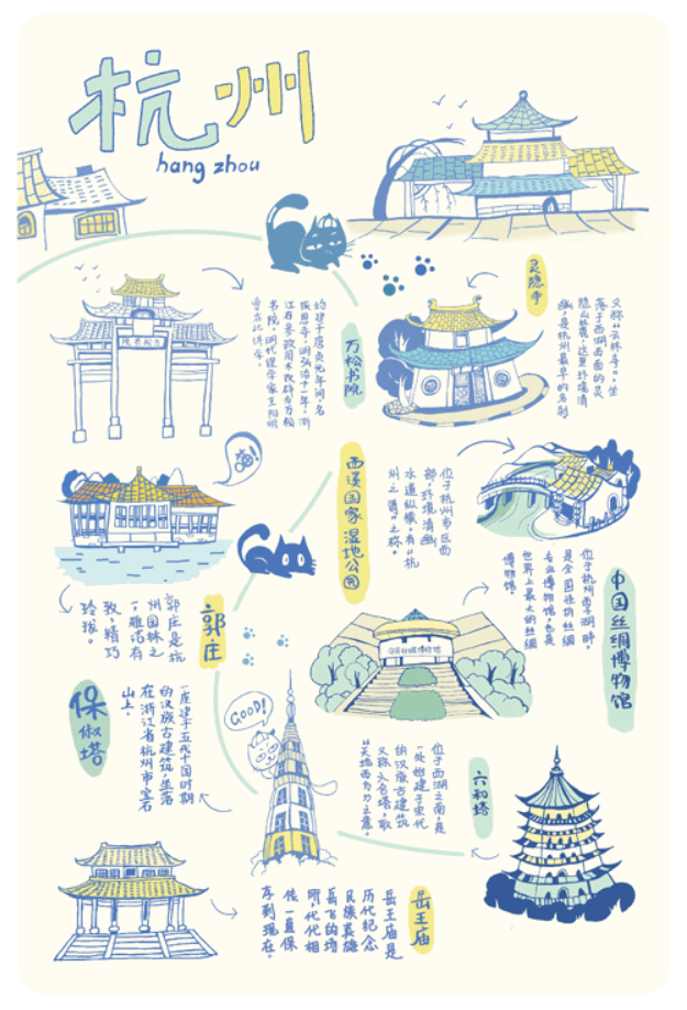 提供明信片:猫空手绘·杭州建筑,详见下图