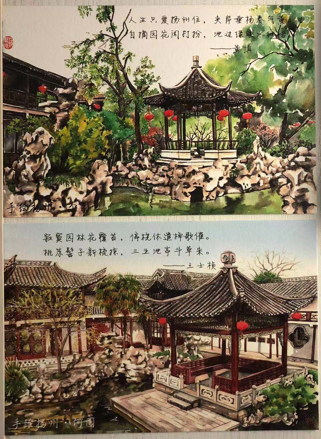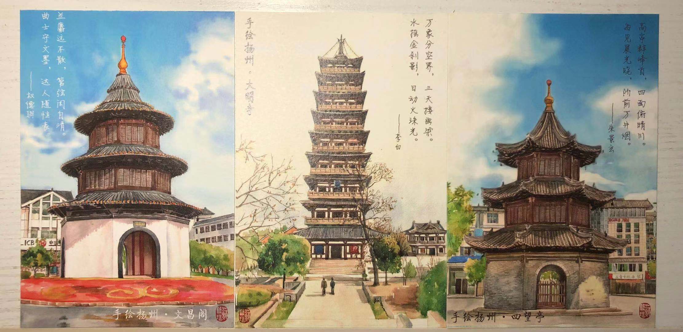 提供明信片:手绘扬州,邮票小帆船不干胶