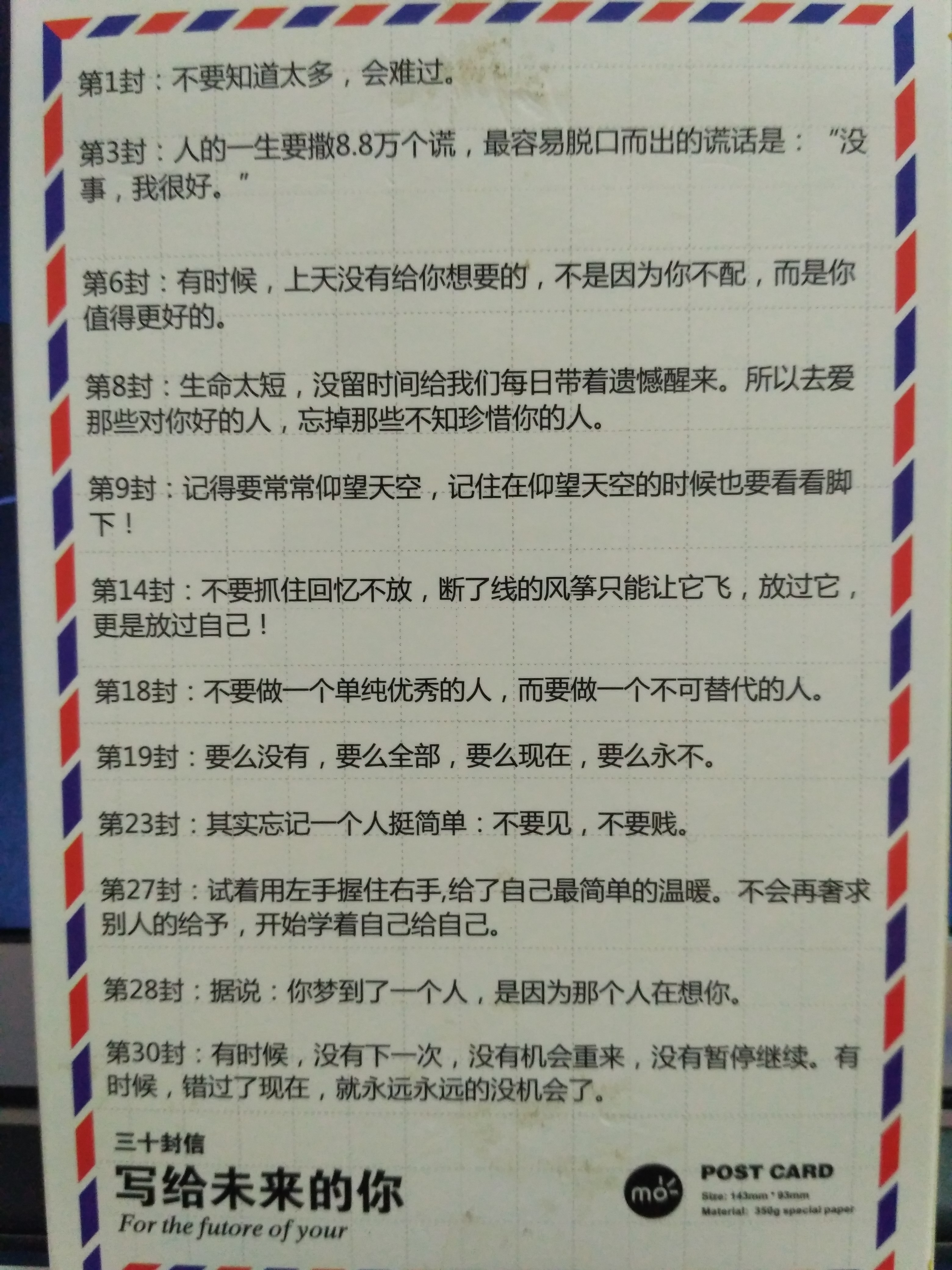 提供明信片:三十封信–写给未来的你