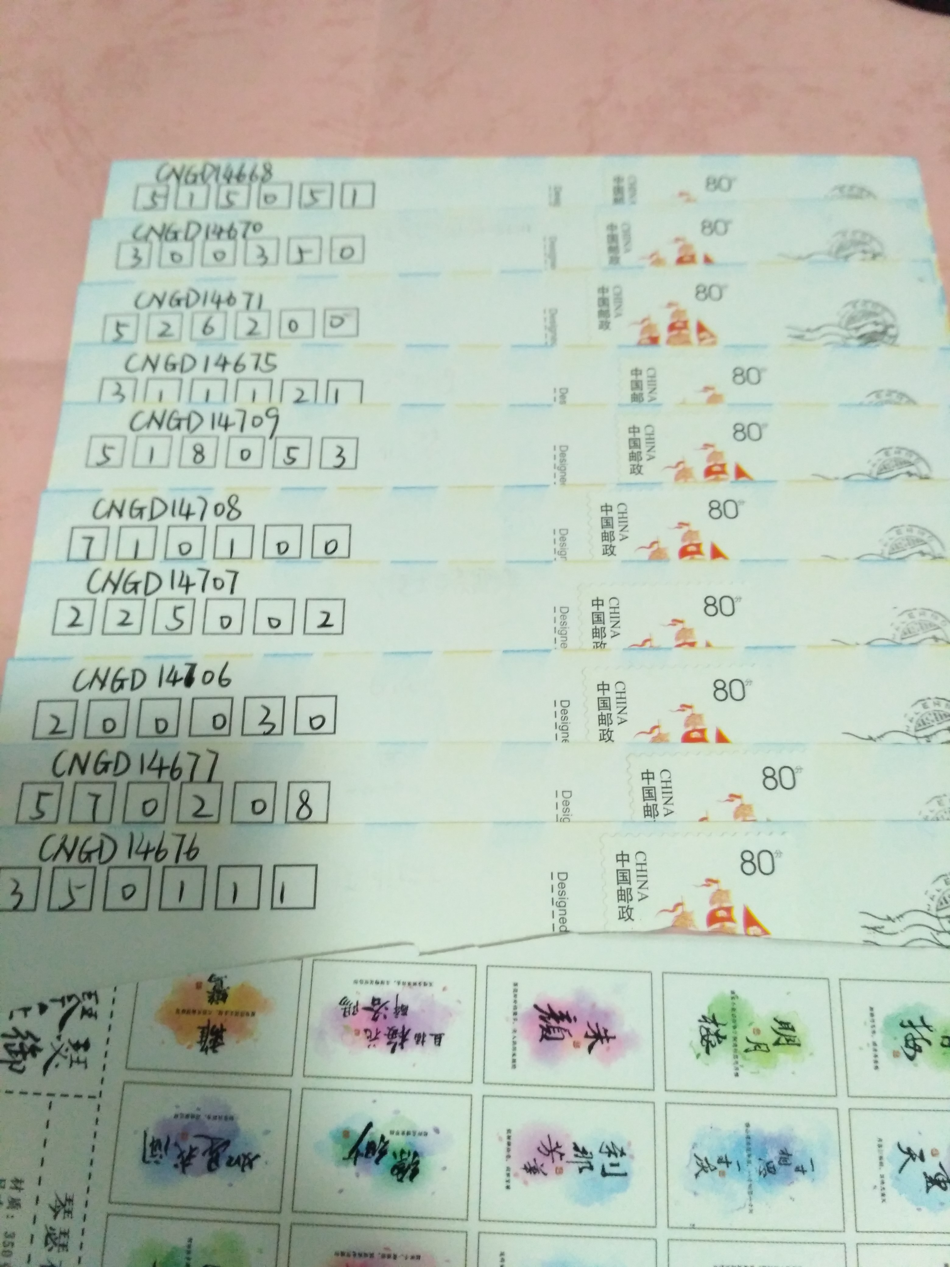 我的邮票是小帆船,不知道会不会被贴条形码,但是我会留左下角位置。