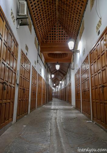 (非穆斯林不能进去清真寺,只能进经学院参观一下)看到了伊玛目带领穆斯林做礼拜的位置。 越往深处走,越寂静,感觉整个人的心境空灵,仿佛回到了1000年前。穿着吉拉巴(尖顶帽子大长袍)的宗教人士站在街边聊天,路过时冲着我们打招呼。