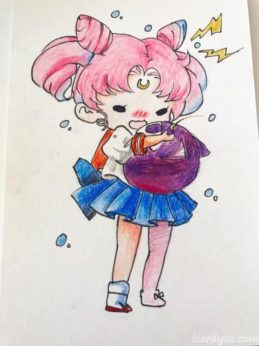 [换片]手绘自己画的明信片一张美少女战士主题