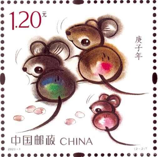 中国邮政定于2020年1月5日发行《庚子年》特种邮票1套2枚,图案内容分别为:子鼠开天、鼠兆丰年,全套邮票面值为2.40元。