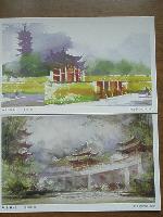 提供明信片:龙华胜景-水彩画2张