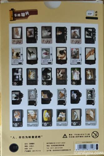 一时兴起买了一盒“定格猫片”盒片,异形,外形是各式照相机的形状,取景框里是不同的猫咪;