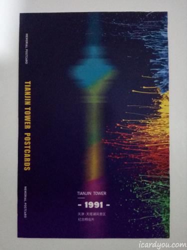 天塔即天津广播电视塔,位于天津市河西区,塔高415.2米,矗立在水面上,是世界上唯一的“水中之塔”。天塔对外开放两层:一是距地面253米的观景大厅,二是距地面257米的天塔西岸书斋·知道吧。这套明信片是我在253米处买的,所以这张片也算来自很高的地方了。