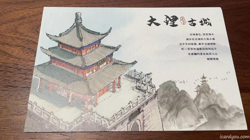 去大理时在古城的嘉华鲜花饼店买饼子时送的一张明信片。