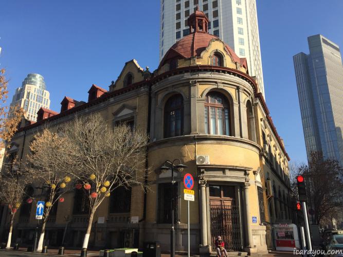 4 华俄道胜银行旧址,于1900年兴建,此楼为天津唯一使用穹顶、采光亭的银行建筑,它还是中国第一个采用外墙瓷砖的建筑,现为中国人民银行天津分行相关机构使用。