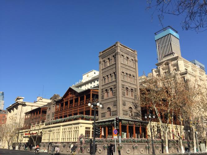 2 中法工商银行大楼旧址,建于1932年,转角处的10根科林斯巨柱是标志性景观,建筑风格为罗马古典复兴式,现为中国银行天津分行。