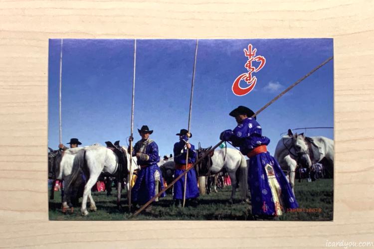 去年年末完成课程作业时机缘巧合收了两款充满蒙古族特色的明信片,数量不少,厚厚一踏有一百多张,组成了我期末作业的一部分。今天撤展后打算全部送出。有两款,第一款是人文内容:牧民牧马套马杆;第二款是风景内容:草原蓝天白云蒙古包。