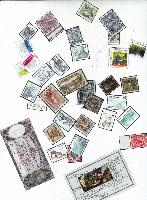 套寄30枚邮票图案的小贴纸,附赠国外邮票一枚