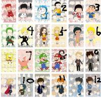 我会2张一起实寄,因为有些人物我不认识,所以请注明标号,蒽蒽,懒得一一上大图了,就像小丸子那对那样的,大家将就着看吧。略拖 1、2、3、4、5、6、7、9、10、11、12、13、14、15已无