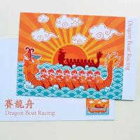 提供明信片:龙舟片,邮票是儿童绘画(如图)