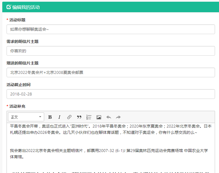我会寄出2022北京冬奥会相关主题明信片,邮票用2007-32 (6-1)J 第29届奥林匹克运动会竞赛场馆 中国农业大学体育馆。