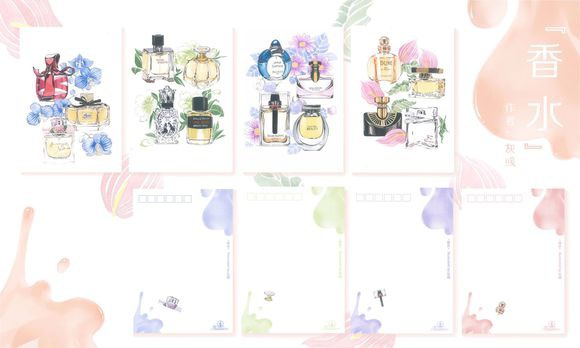 如图一套4张香水的片